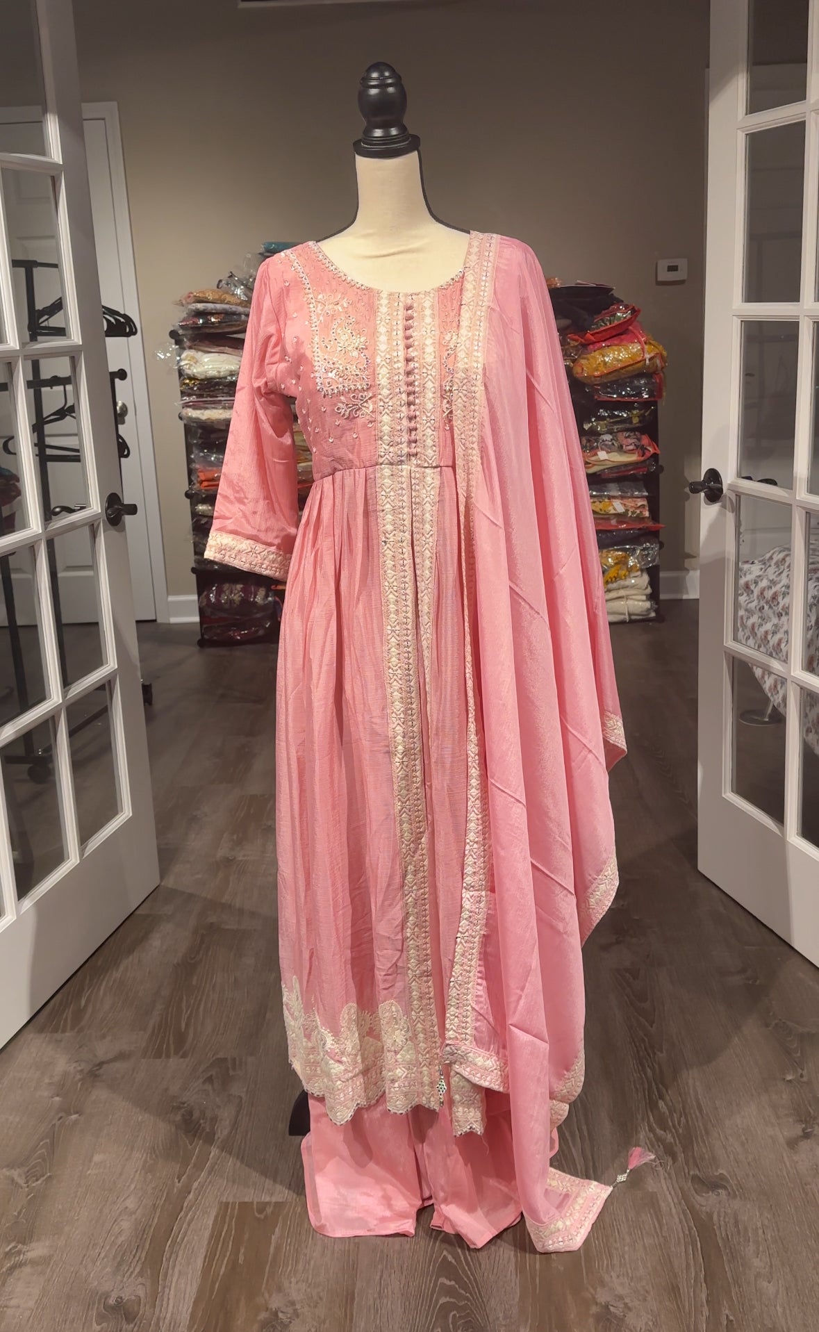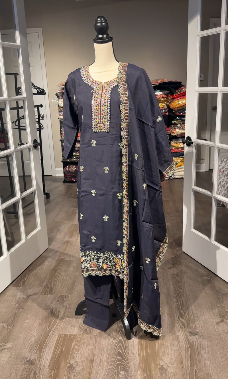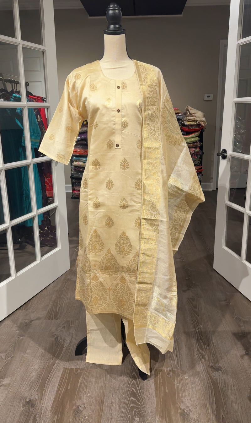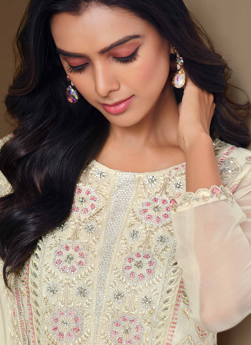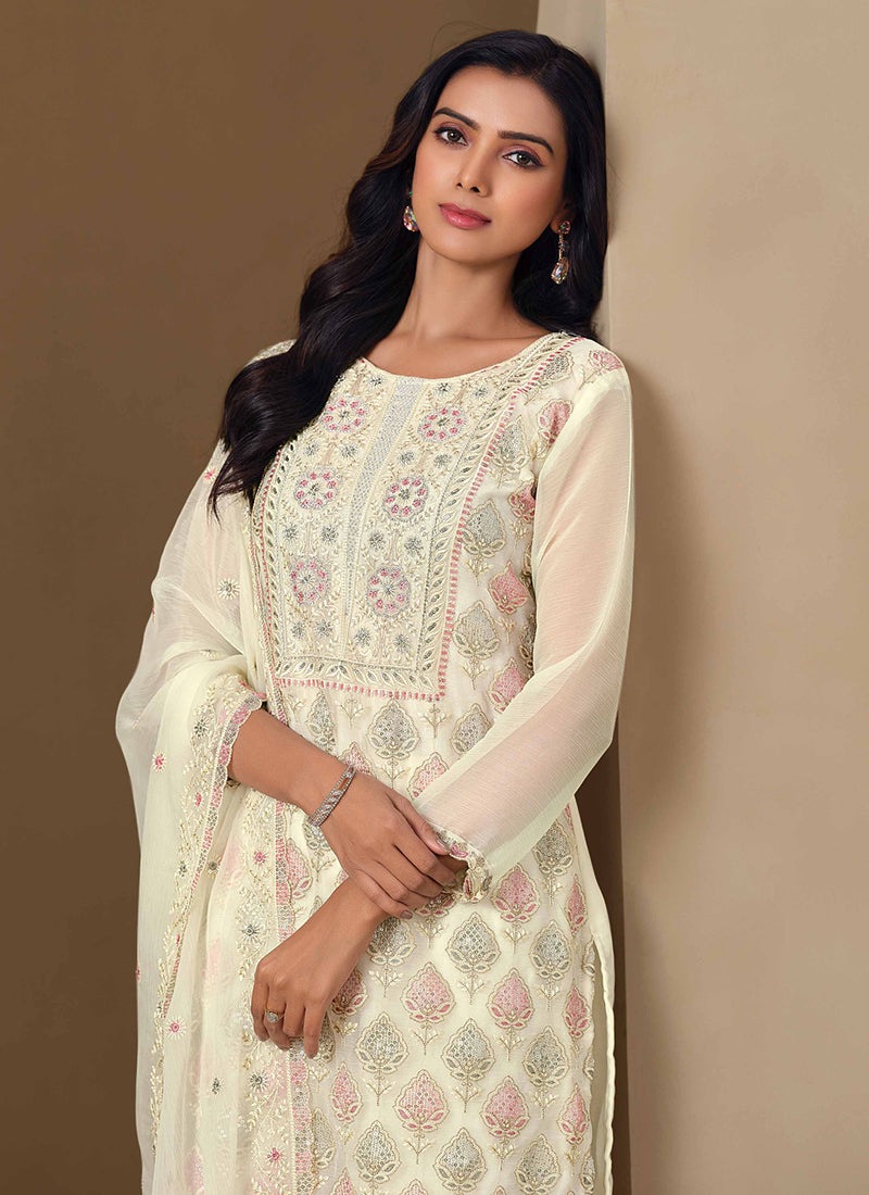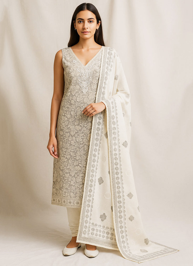 Off-White Crinkle Chiffon Lucknowi Salwar